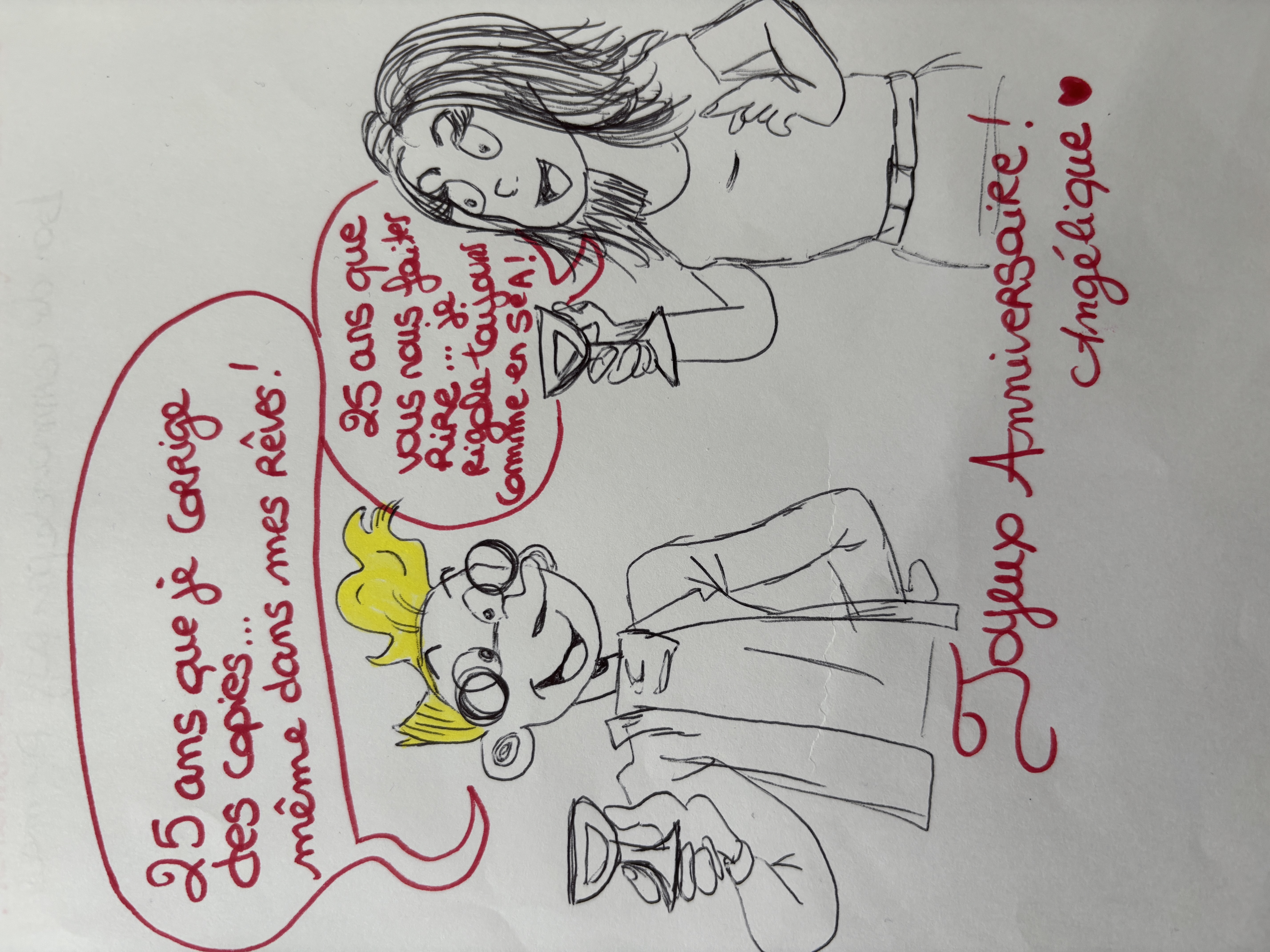 Félicitations pour vos 25 ans de carrière ! Un quart de siècle à enseigner l'humour, c'est une performance digne d'une mention très bien. Bravo à tous les 4 pour cette collaboration exemplaire. C’est un vrai plaisir de partager ces moments avec vous.